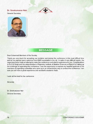 and let me express warm welcome from ISMS secretariat to you all. In spite of very difficult logistic, the