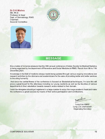 It is a matter of immense pleasure that the 39th annual conference of Indian Society for Medical Statistics