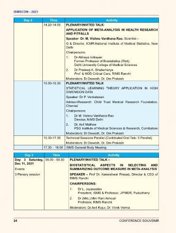 Day 3 Saturday, 09.00 - 09.30 PLENARY/INVITED TALK –