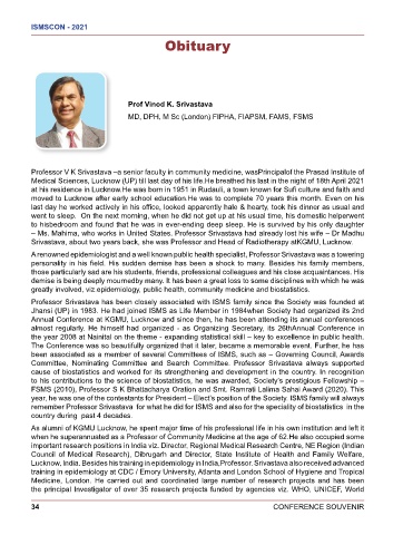 remember Professor Srivastava for what he did for ISMS and also for the speciality of biostatistics in the
