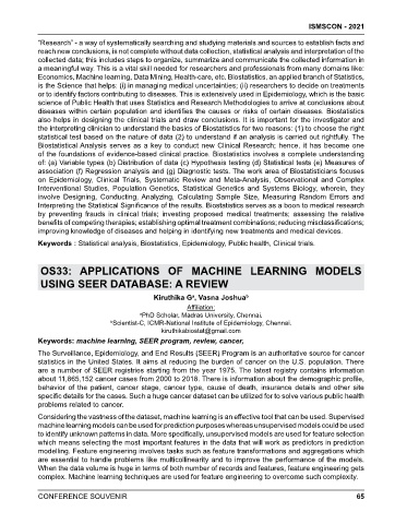 OS33: APPLICATIONS OF MACHINE LEARNING MODELS