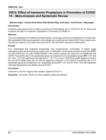 OS72: Effect of Ivermectin Prophylaxis in Prevention of COVID