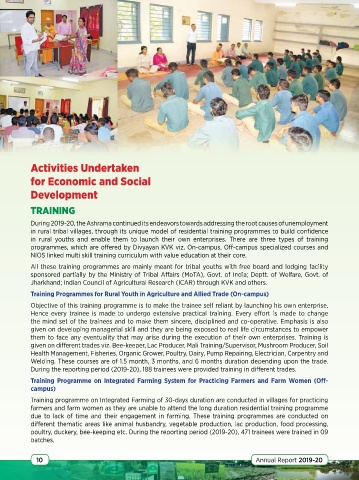 poultry, duckery, bee-keeping etc. During the reporting period (2019-20), 471 trainees were trained in 09