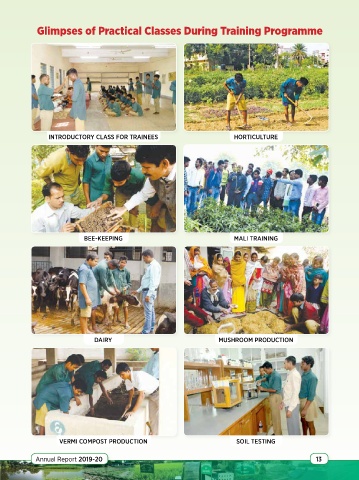 Glimpses of Practical Classes During Training Programme INTRODUCTORY CLASS FOR TRAINEES HORTICULTURE BEE-KEEPING MALI TRAINING DAIRY MUSHROOM PRODUCTION VERMI COMPOST PRODUCTION SOIL TESTING Annual Report 2019-20 13