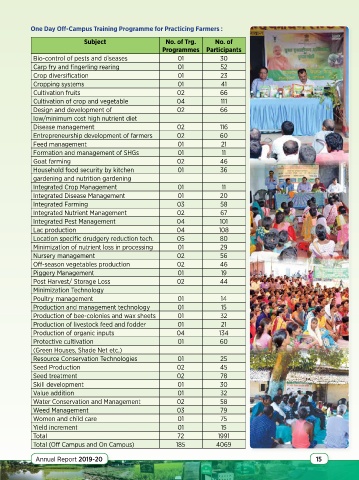One Day Off-Campus Training Programme for Practicing Farmers :