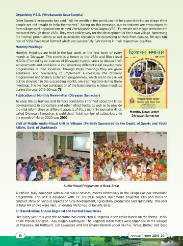 form village level organizations named Vivekananda Seva Sagha (VSS). Extension and village activities are