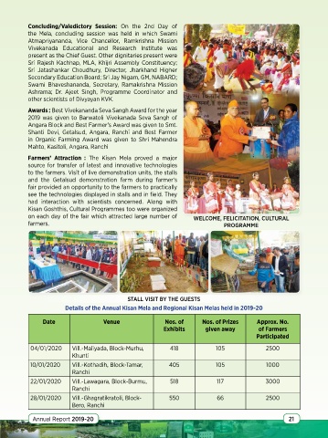 Details of the Annual Kisan Mela and Regional Kisan Melas held in 2019-20