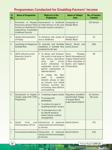 Sl. Name of Programme Objective of the Name of Village/ No. of Farmers