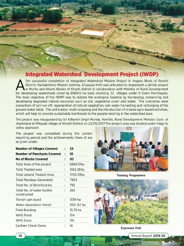fter successful completion of Integrated Watershed Mission Project in Angara Block of Ranchi