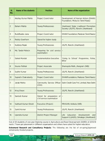 Out of 20 students of one-year Diploma course in Agriculture and Rural Development (DARD) of 2018-19