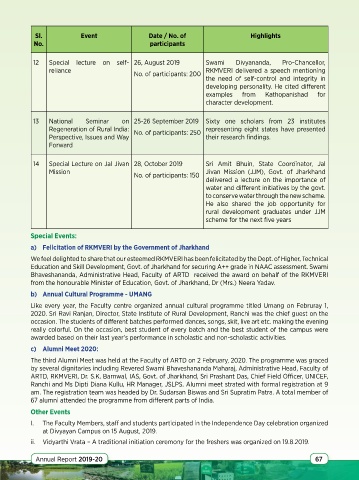 12 Special lecture on self- 26, August 2019 Swami Divyananda, Pro-Chancellor,