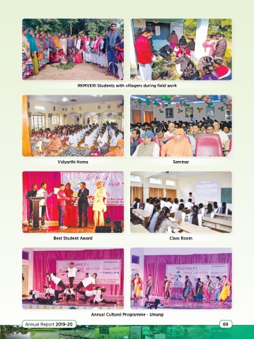 RKMVERI Students with villagers during field work Vidyarthi Homa Seminar Best Student Award Class Room Annual Cultural Programme - Umang Annual Report 2019-20 69