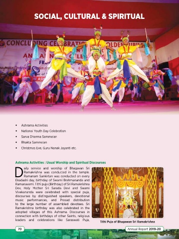 Ashrama Activities : Usual Worship and Spiritual Discourses