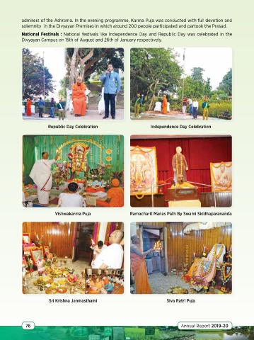admirers of the Ashrama. In the evening programme, Karma Puja was conducted with full devotion and