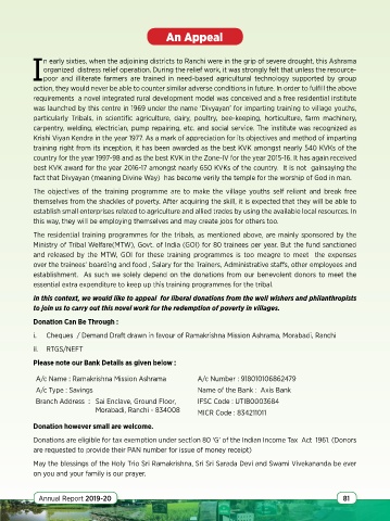 In this context, we would like to appeal for liberal donations from the well wishers and philanthropists