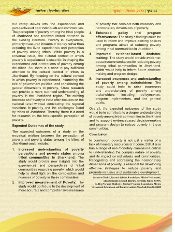 The perception of poverty among the tribal people 3. Enhanced policy and program