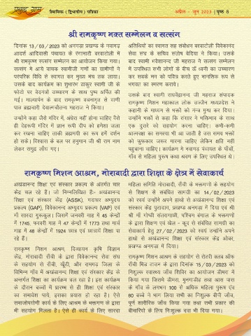 jkeÑ".k fe'ku vkJe] eksjkcknh }kjk f'k{kk ds {ks= esa lsokdk;Z