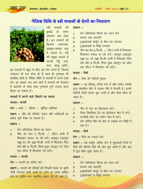 1- jksx çfrjksèkd fdLe dk p;u Qly & fepZ