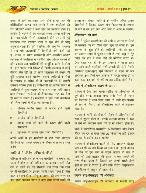 gh loksZÙke mik; gSA eNfy;ksa esa gksus okyh chekfj;ksa ij fNænkj Vªs yxk fn;k tk;s] rks ikuh ,d QCokjs