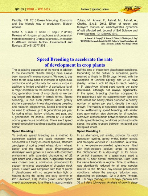 Pandita, P.R. 2013.Green Manuring: Economic Zubair, M., Anwar, F., Ashraf, M., Ashraf, A.,